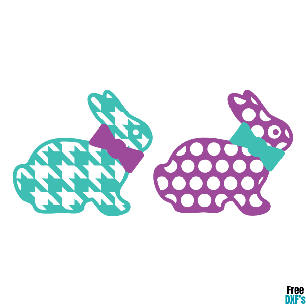 Download the Free Easter Bunny with Bow Houndstooth and Polka Dot DXF design and explore more get your DXF files here – great for personal or commercial crafting projects!
