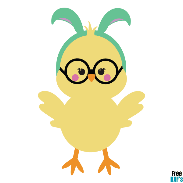 Free Easter Chick with Bunny Ears and Glasses DXF