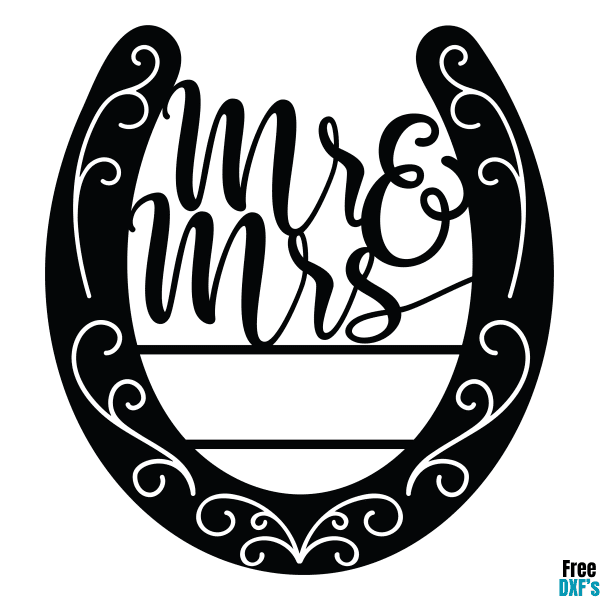 Free Mr and Mrs Wedding Horseshoe Design DXF