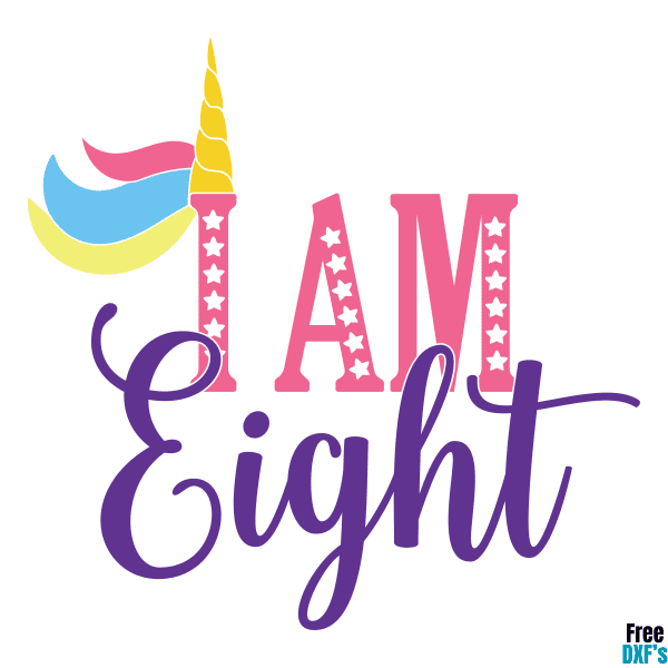 Free Unicorn Birthday I am Eight DXF