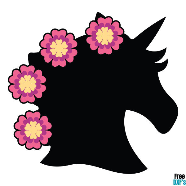 Free Unicorn Head Silhouette with Flowers Design DXF