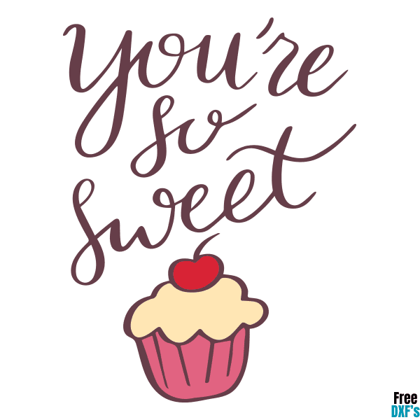 Download the Free You’re So Sweet Cupcake Quote Design DXF design and explore more DXF files for free use – ready to enhance your creative projects!